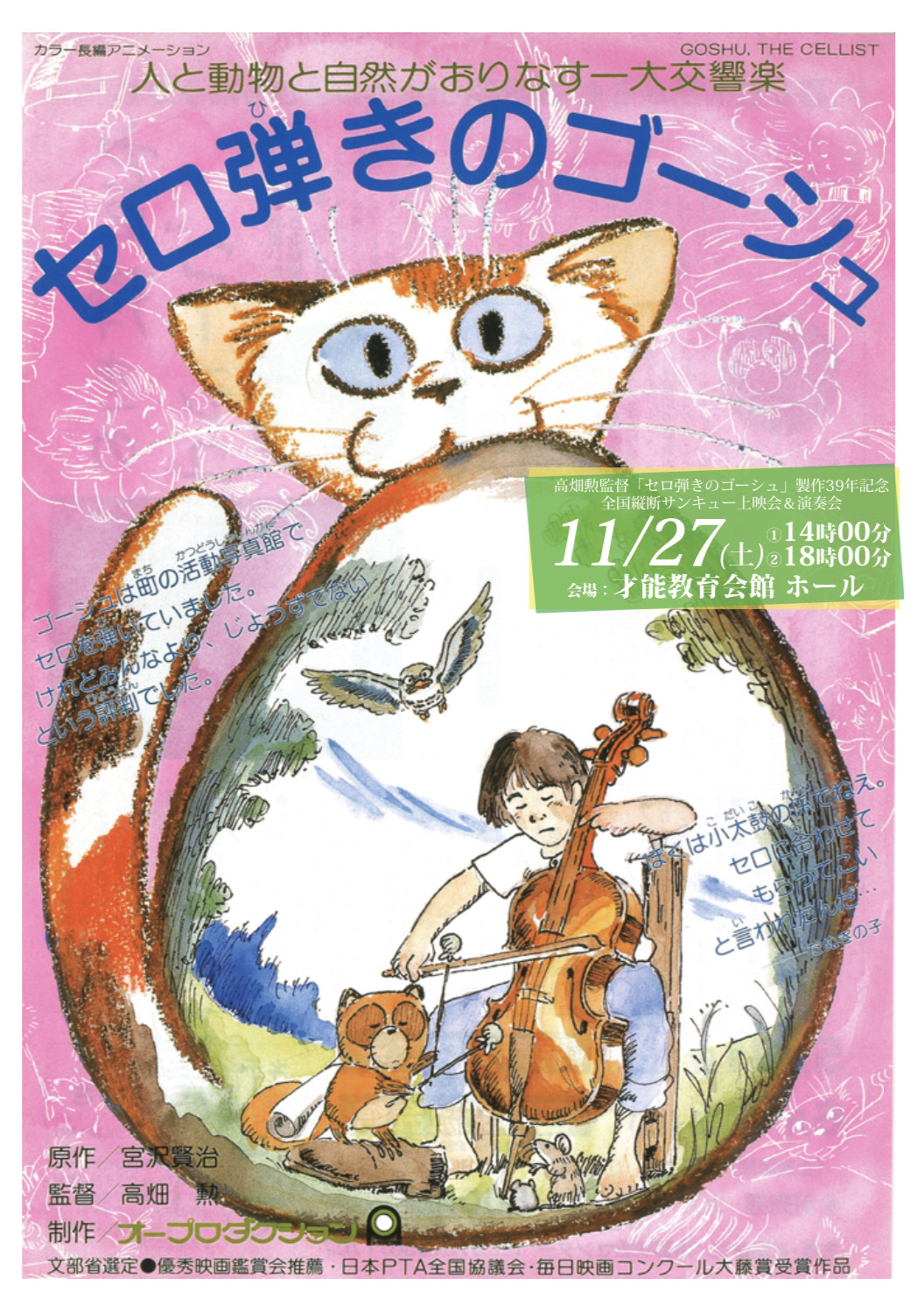 | 「セロ弾きのゴーシュ」製作39年記念全国縦断サンキュー上映会&演奏会 | ||