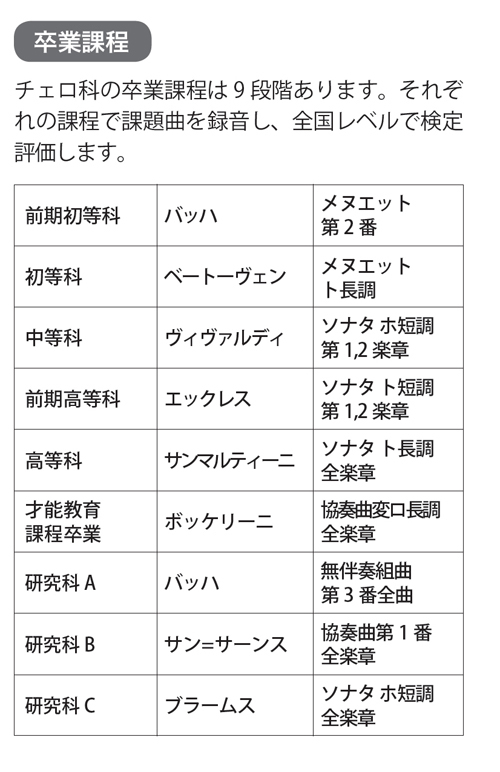 才能教育通信 第449号 スズキ・メソードの卒業制度は、ヴァイオリン、ピアノ、チェロ、フルートの各科ごとに、成長にあわせて課題曲を審査する独自のものです。卒業録音は、先生の判断で行なわれます。それぞれの先生と一緒に卒業録音を仕上げていく過程は簡単ではありませんが、録音を終えたときのホッとした気持ちは、一つやり遂げた自信になり、次への意欲作りの源になります。