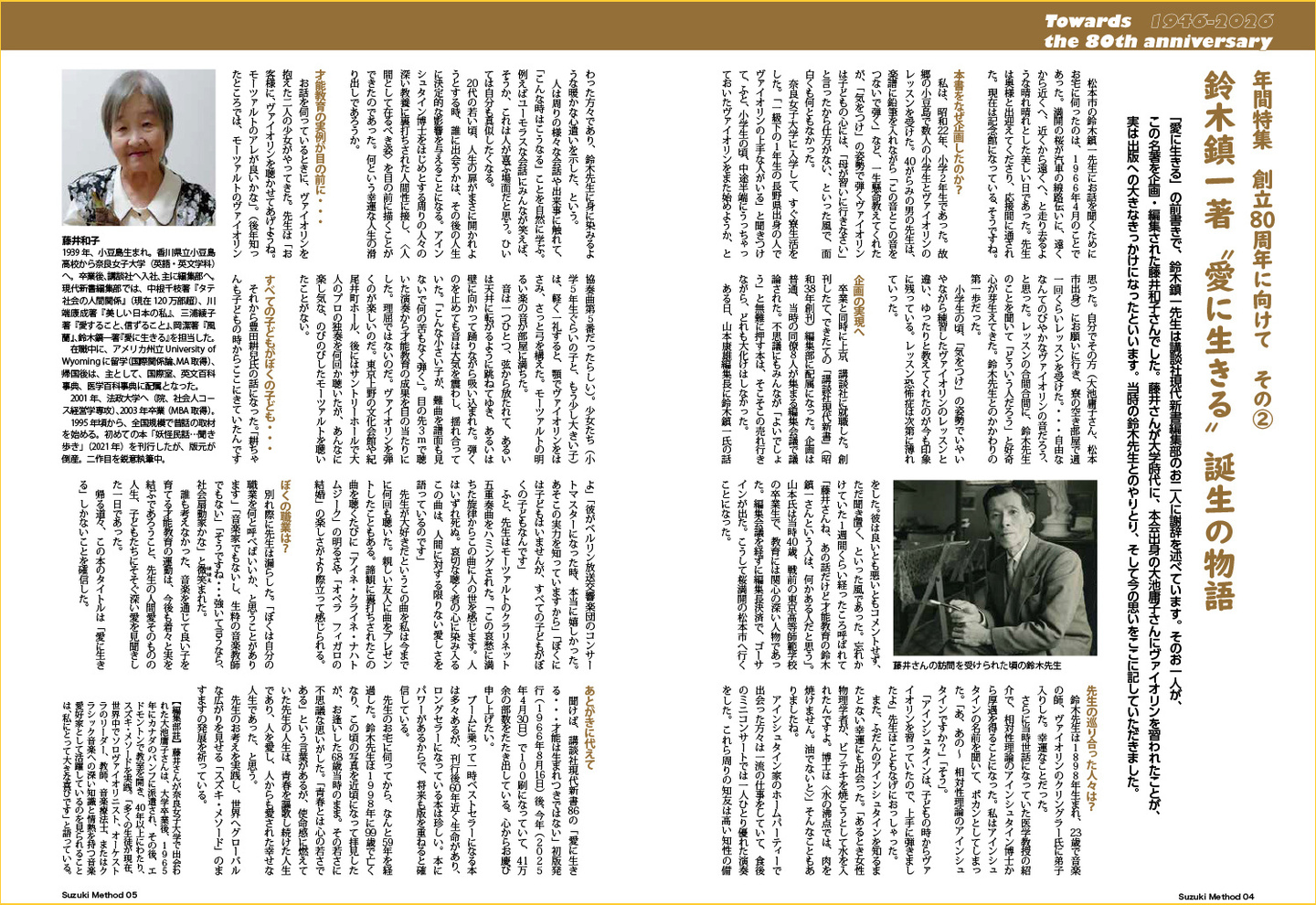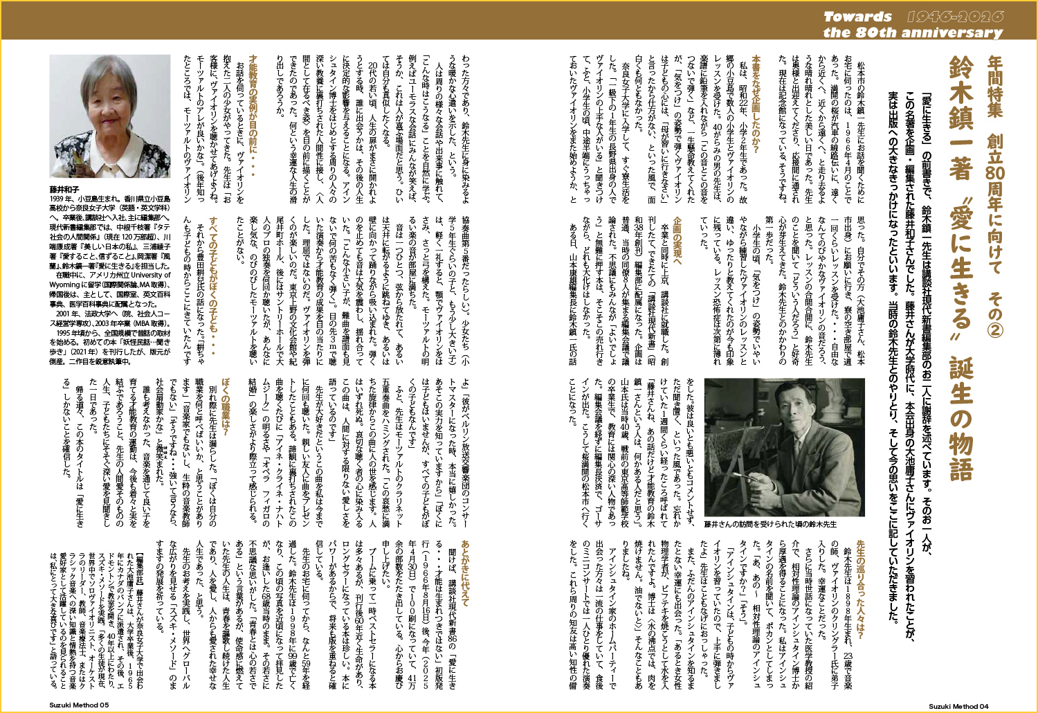 程なくして、当時の講談社現代新書編集部で担当編集者だった藤井和子さんを探し出すことができ、全国指導者研究会が終わった翌日の6月5日に、86歳になられていた藤井さんと都内で面会。出版に至る経緯をご本人の執筆で、6月発行の機関誌222号の特集記事として記録するまでに至りました。そこでは、藤井さんが大学時代に出会った、本会出身の大池庸子さんにヴァイオリンを習われたことが、実は出版の大きなきっかけとなったという、大変ドラマティックなお話もいただきました。