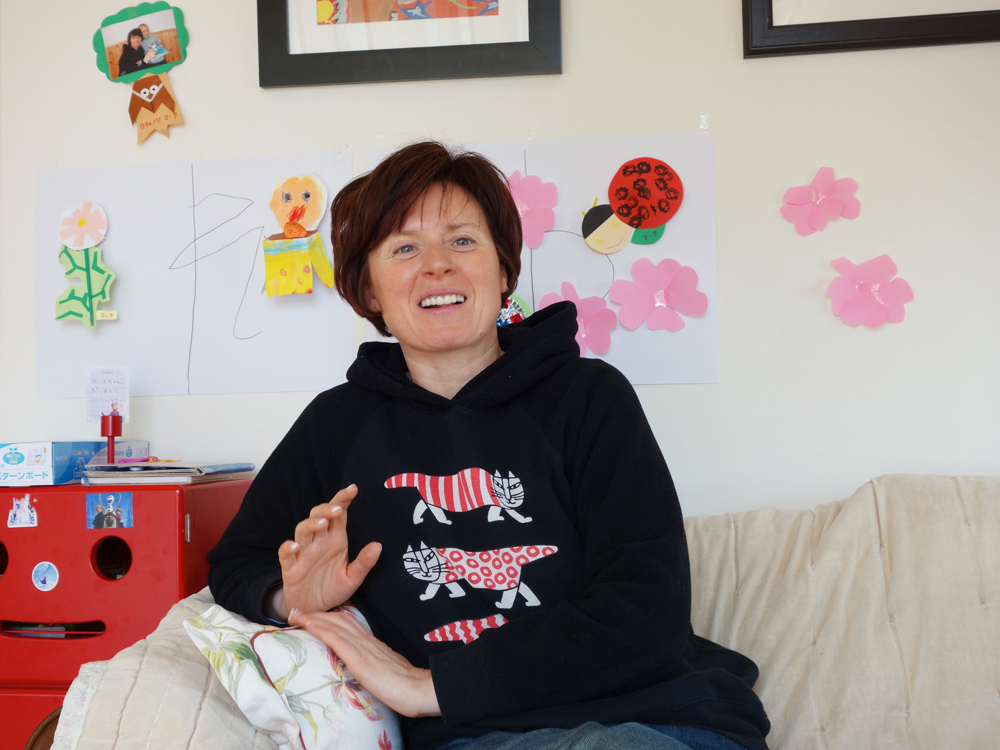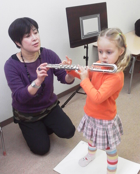 自宅でインタビューに答えるオクサナさん。日本語が大変上手です 2014年の夏期学校で、0~3歳児コースや「協奏曲の夕べ」を鑑賞しました。フルートで立派な演奏をされた生徒さんを見て、マータが「フルートをやりたい」と言いました。