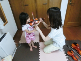 綾菜が楽器科に移る時に、本人に聞いたところ、「絶対にヴァイオリンがいい」ということで決めました。由依菜は、お姉ちゃんが練習している姿を1歳前から見ており、レッスンにも一緒について行っているからか、自然とヴァイオリンをやっていた、という感じです。