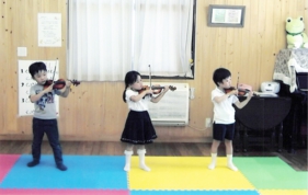 おうちでのお稽古は、いつも3人で一緒。そうした習慣を身につけることができました やはり、環境の違いにより、子どもたちへの効果の違いはあるようでした。綾菜の方は、すべて初めてのことでしたので、ヴァイオリンの曲もCDで何度も聴いて、ようやく覚えるという感じですが、由依菜の方は、お腹の中にいる時から聴いていた馴染のある曲として、また、お姉ちゃんと一緒にレッスンに行き、毎日の練習もしているので、突然、音階でヴァイオリンのレッスン曲を歌い出すこともあり、びっくりしています。