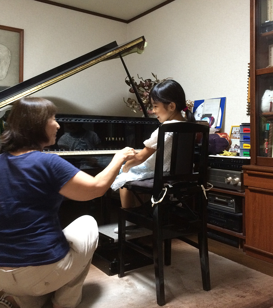 山名靖子先生のピアノ教室に伺うようになったのは、家が近いこともありましたし、0〜3歳児コースの頃からお世話になっていた先生だったからです。いつも明るく前向きなお言葉でサポートしてくださった先生でしたので、安心してお願いできました。
