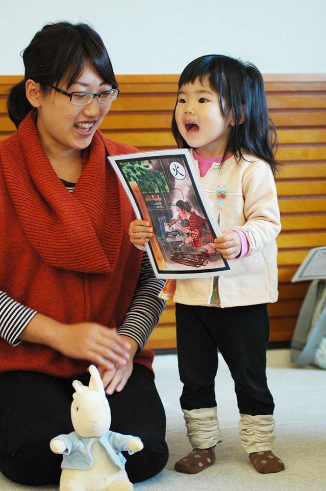 左が母親の佳子さん、美樹ちゃんの興味津々の様子が伝わってきます 0〜3歳児コースに参加するようになったのは、 美樹ちゃんが生後8ヵ月の頃でした。家で美樹ちゃんとできることを探していたら、お義母さんが紹介してくれました。ちなみに、お義母さんは、スズキ・メソードでピアノを教えている甘佐夏子です。