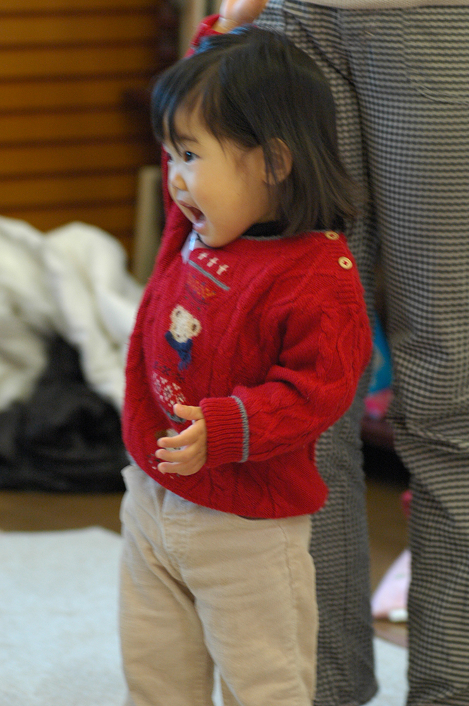 元気に受け答えする美樹ちゃん 参加する前は、何も考えておらず気楽な気持ちで参加しました。月齢が0歳でしたので、できることはそう多くはありませんでした。参加期間中は0〜3歳児コースのお稽古を通じ、聞いたことや見たことを表現できるようになり、親子で喜びました。毎日、音楽を聴いていたせいか、リズム打ちは割と月齢の早いうちから上手に叩けていました。参加してからは、ハキハキと人前で発表できる子に成長しました。
