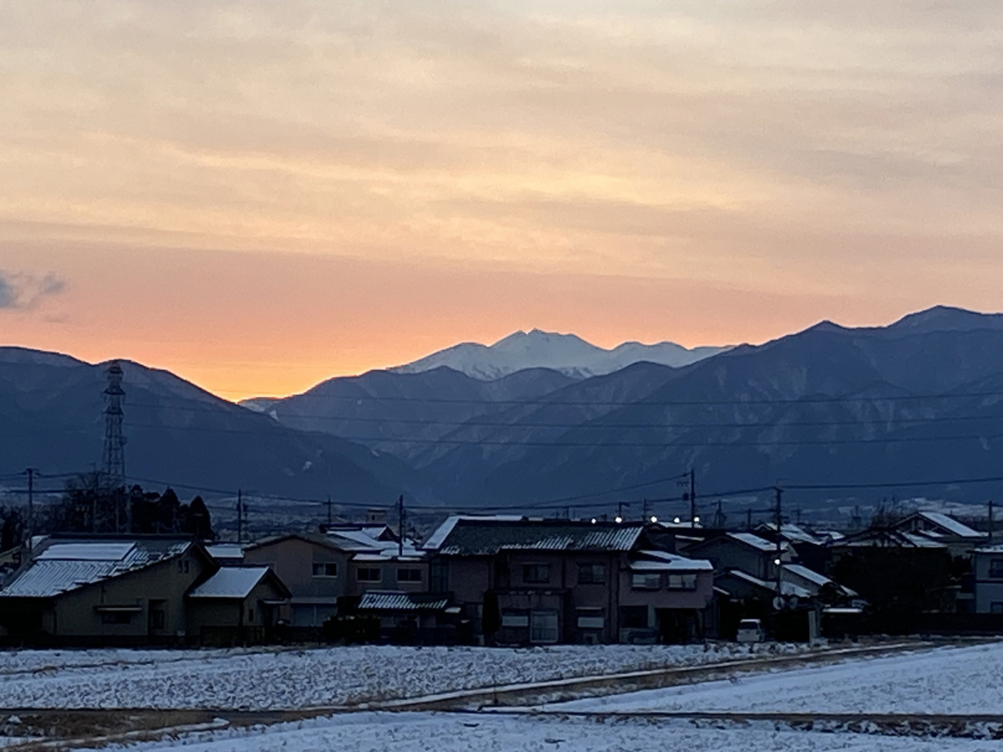 この日の夕方、3月までの勤務先の高校からの帰り道、市内大村から撮った乗鞍岳。言葉で言ったら「幽玄」あるいは「彼岸(あちらの世界)」という印象でした。