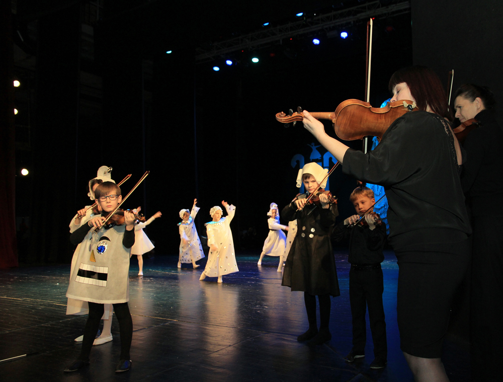 しかし、毎日の生活の中で一番主要な部分は音楽です。リトアニア・スズキ協会からの先生に子どもたちはヴァイオリン、ピアノ、ギター、チェロを勉強しています。子どもばかりでなく親も一緒です。親の同意を得て、どの子も学校の合奏団で弾くことができますし、週に一度個人レッスンを受けることもできます。スズキの指導曲集のすべてを修了すると、修了コンサートを行ないます。子どもたちの両親はコンサートに学校関係者全員を招待します。昨年は週末に11回のコンサートがありました。今までの最高記録でしたが、今年はもっと多くなり、昨年の記録を破ることでしょう。