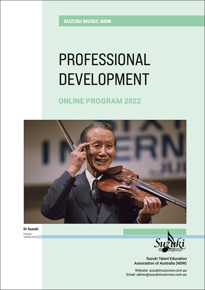 The Suzuki Talent Education Association of Australia (NSW) are very pleased to present our annual online Professional Development Program (PD) for 2022. The online conference will take place Tuesday 19th April – Sunday 24th April. This is the third year of holding our Professional Development program online due to the continuing uncertainty of COVID-19. Previously the PD took place preceding Summer School or Autumn Festival. In Sydney we have been so lucky to have many visiting international guest faculty over the years, especially from Japan and that has greatly shaped Suzuki Method in Australia.