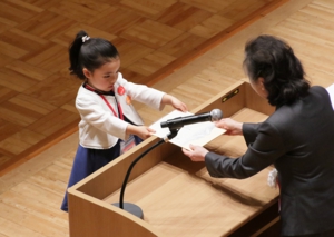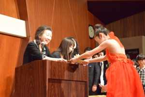 緊張しますが、嬉しい瞬間です! 甲信地区では、卒業式に参加できる卒業生は、鈴木裕子会長から全員に卒業証書を授与していただいております。これは生徒たちにとって緊張する場面でもあり、誇りに思える経験でもあります。そしてオーケストラとの共演。普段、独奏楽器であるピアノが、オーケストラと協奏曲を演奏するのは、共演できる生徒はもちろん、これから協奏曲を勉強する生徒たちにとっても憧れのステージです。スズキ・メソードならではの舞台です。