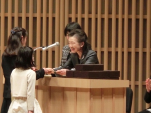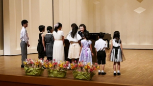 後半は前期初等科から研究科Aまでよくお稽古した息のあった3台斉奏を聴かせてくれました。最後は研究科Bの独奏。皆の憧れのまなざしを一身に受け、立派にベートーヴェンのソナタを演奏し、すばらしい卒業式を無事行なうことができました。