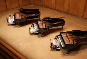 3台斉奏 私がピアノを始めたのは5歳の時です。姉がやっていたので私もピアノに関心を持ち、ピアノでいろいろな曲を弾いてみたいという気持ちが高まりました。家ではCDを聴いたり、右手の練習、左手の練習、両手の練習を何度もしました。