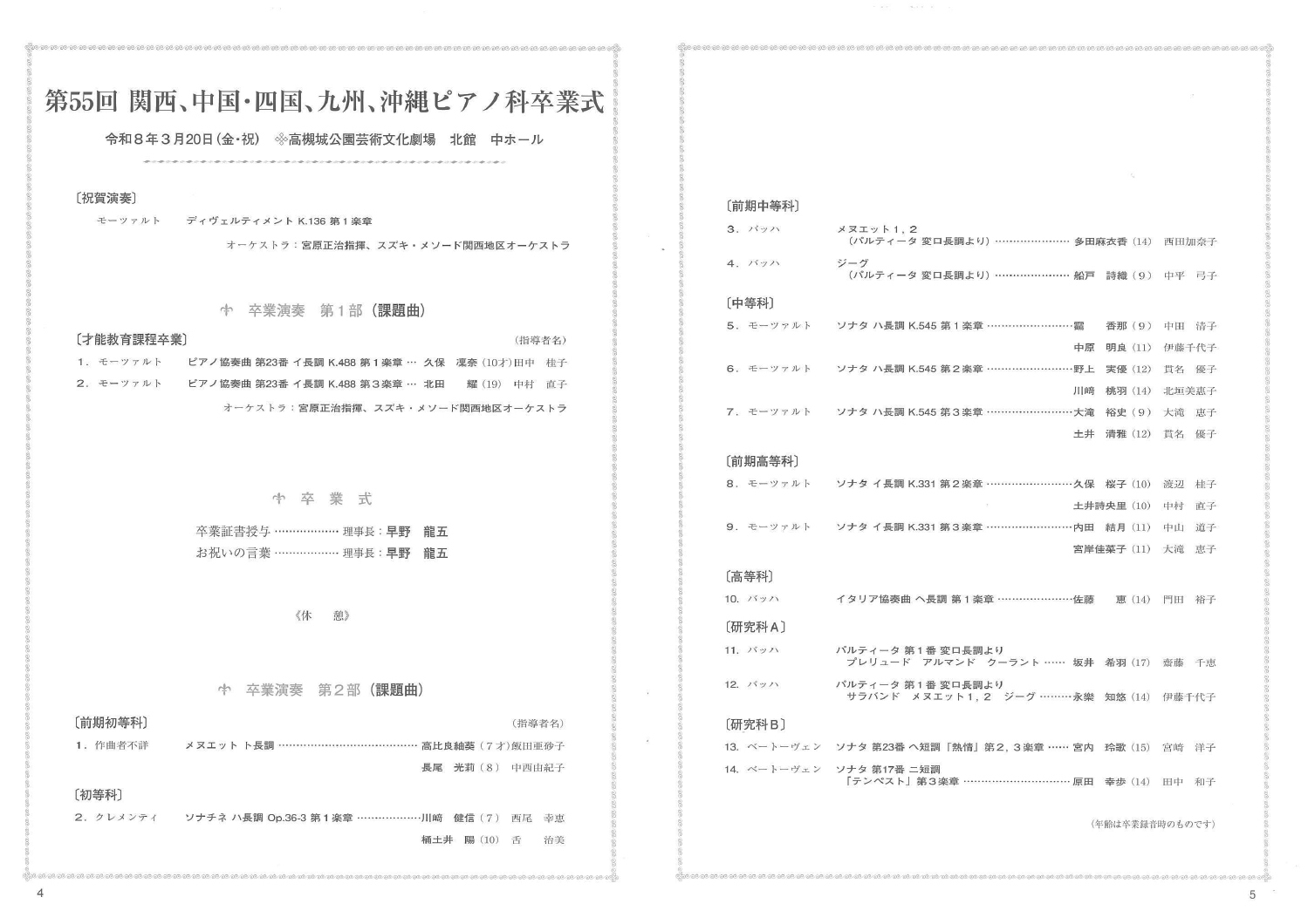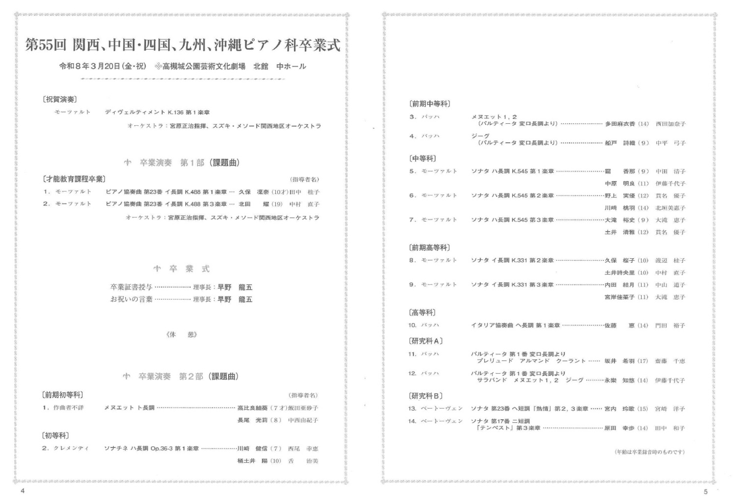 桜の開花宣言がちらほら聞かれる中、第55回関西、中国•四国、九州、沖縄地区ピアノ科卒業式を迎えることができました。