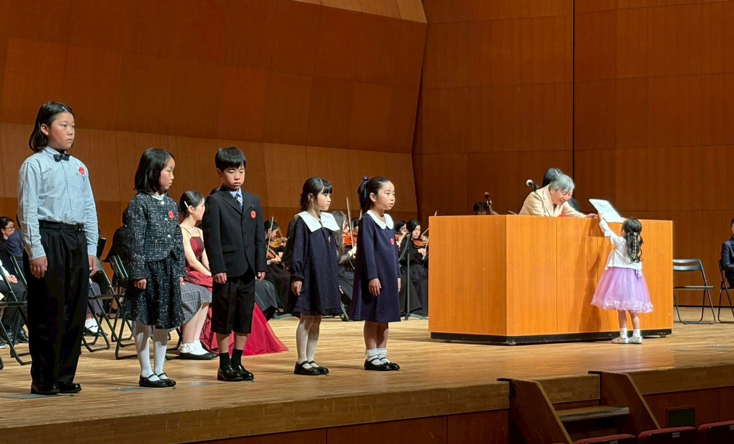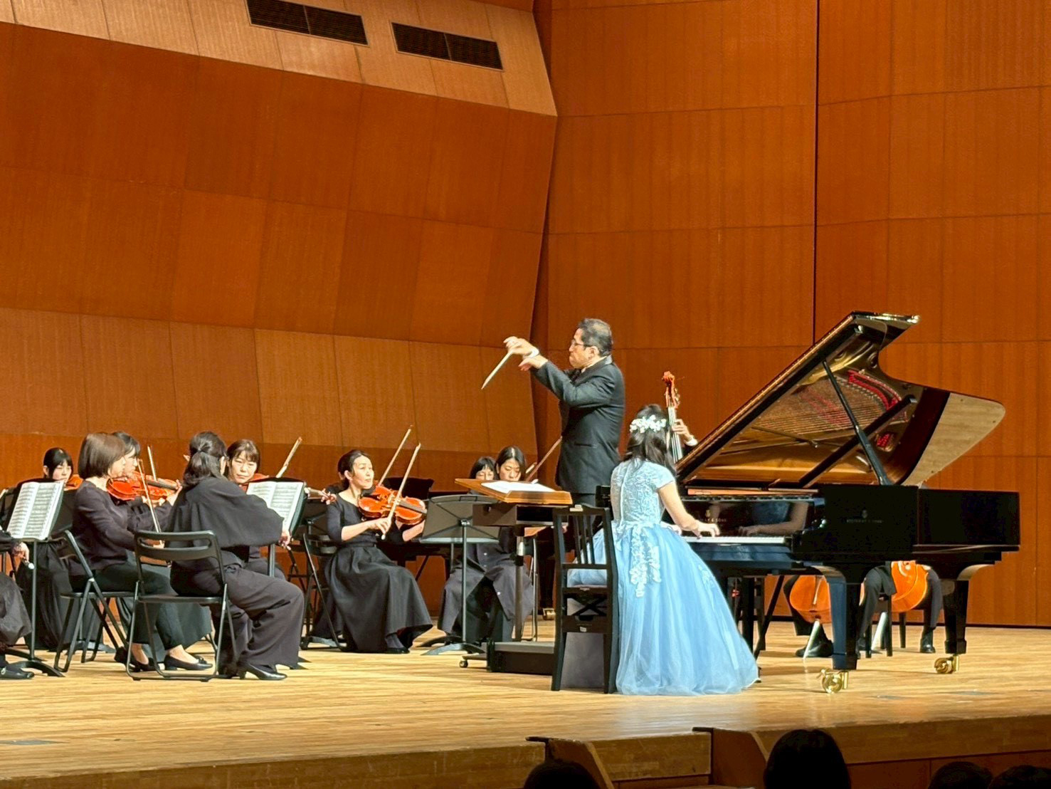 オーケストラの人と一緒に演奏していたピアノの皆さんは、迫力がある所と優しい感じの音色が混ざり合っていてすごく感動しました。