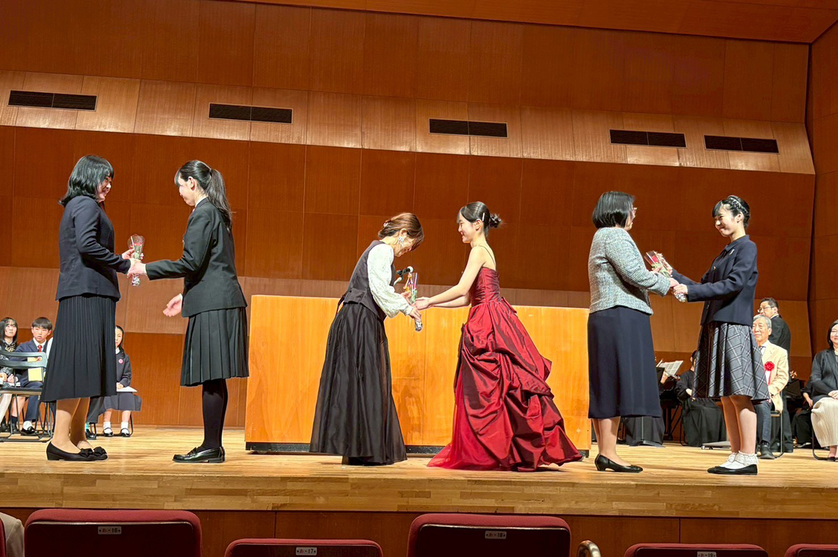 続いての卒業演奏では自由曲と課題曲を19名が演奏しました。練習を重ねてきた、それぞれの精一杯の演奏に会場からあたたかい拍手が送られました前期初等科の「メヌエット ト長調」を演奏した𠮷田悠花さんと、前期中等科の「メヌエット1,2」を演奏した関栞那さんが感想を寄せてくれたので紹介します。