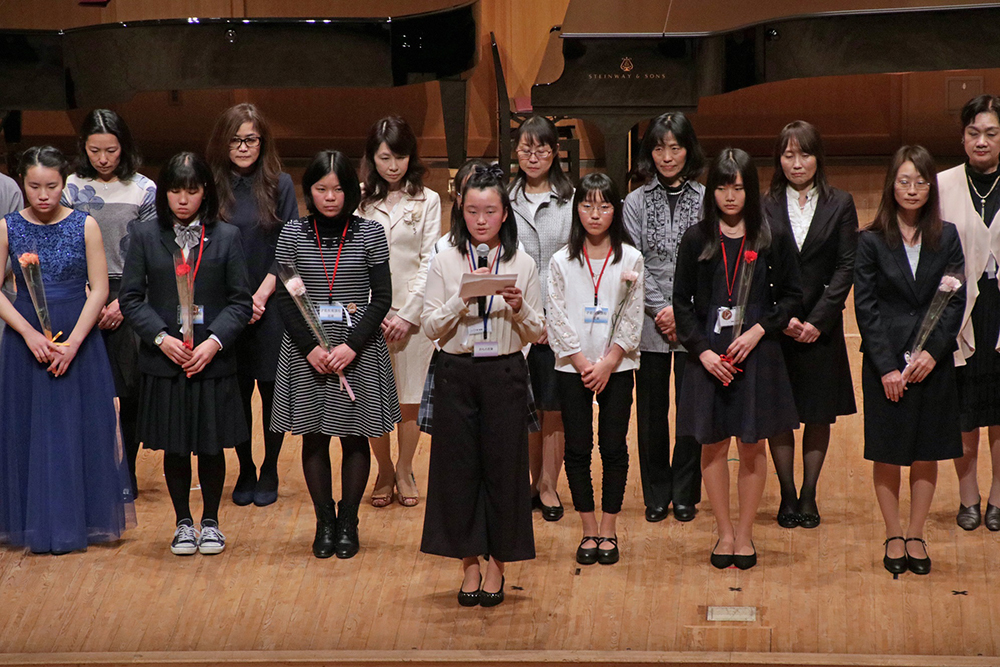 そして今、私は気持ちを込めてピアノで自分を表現できるように成長しました。ここまで、私を指導してくださった先生、いつも温かく見守ってくれた家族のおかげです。本当にありがとうございます。これからも自分を支えてくれた方々に感謝の気持ちを忘れずに、気持ちの伝わる美しい演奏を目指していけるようにがんばります。これからもよろしくお願いします。