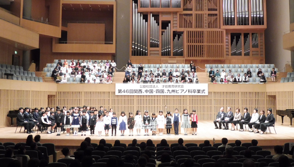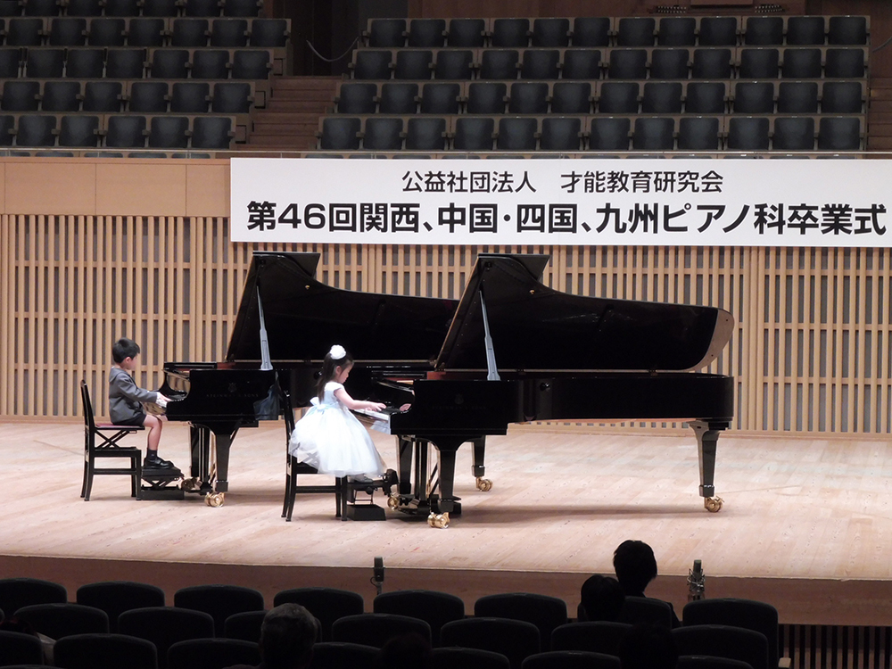 2017年も、各地区でピアノ科卒業式と卒業演奏会を開催しました。スズキ・メソードのピアノ科は、前期初等科から研究科まで、9段階ある卒業課程で課題曲を録音し、全国レベルで検定評価します。卒業演奏会では、その中から選出された生徒が大舞台で演奏することになります。