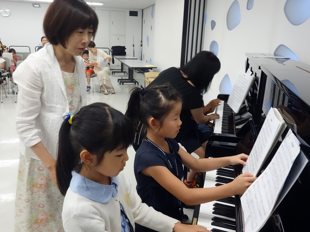 ①夏期学校に参加するまでに、クラスの曲をCDのテンポで弾けるように、がんばっていました。初めての参加ですので、午前と午後のレッスンのみで、コンサートなどは出ずに様子を見ましたが、先生方の子どもを惹きつけるレッスンで、あっという間に時間が過ぎたようです。「楽しみにしていたけれど、本当に楽しかった。来年はコンサートも聴きたい」と言っておりました。「最後まで体調を崩さず、レッスンを受けられたこと」ががんばったことです。1年1年、ステップアップして受講できればと思います。
