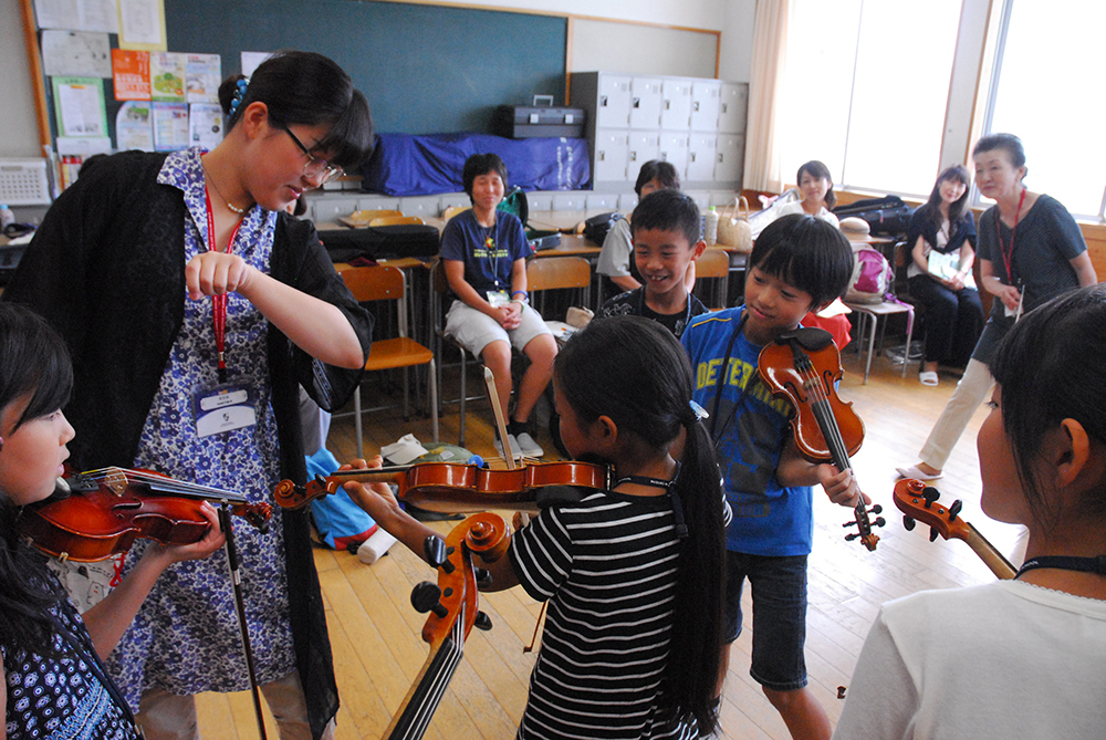 大きい音が出せるように、大きく弓を動かすことをがんばっていました。親は、夏期学校が楽しい思い出で終わるように、レッスン内容について怒らないようにがんばりました。