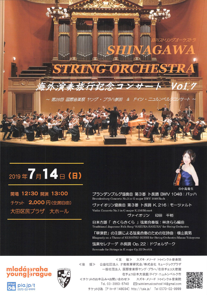 品川ストリングオーケストラは、トゥインクル音楽院の品川弦楽団と品川ジュニア弦楽団メンバーからなり、海外ツアーのために結成されています。