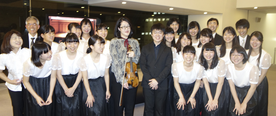 浜離宮朝日ホールでのヤングプラハ創立25周年記念演奏会の終演後 前回、2016年のコンサートツアーでは、第25回国際音楽祭ヤング プラハに招聘され、チェコのKOS少年少女合唱団との合同演奏会(2018年にはKOSの来日公演で再共演が実現)や、チェリストのトマーシュ・ヤムニーク氏との共演も行ないました。帰国後、チェコ共和国大使館での演奏会と浜離宮朝日ホールでのヤング プラハ創立25周年記念演奏会にも参加し、太田弦氏の指揮でヴァイオリニストの周防亮介氏とも共演。これらの演奏会が好評を博し、今回再度の招聘をいただくことになったのです。その時の様子は、マンスリースズキでも紹介させていただきました。