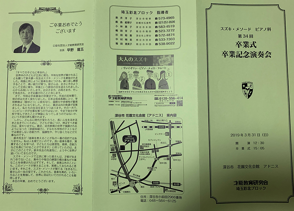 スズキ・メソード埼玉彩北ブロック 第34回卒業式に寄せて