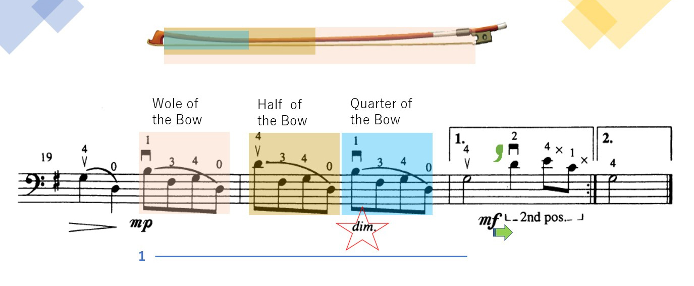 弓使用部分を変えることで自然なdiminuendoを表現できます。