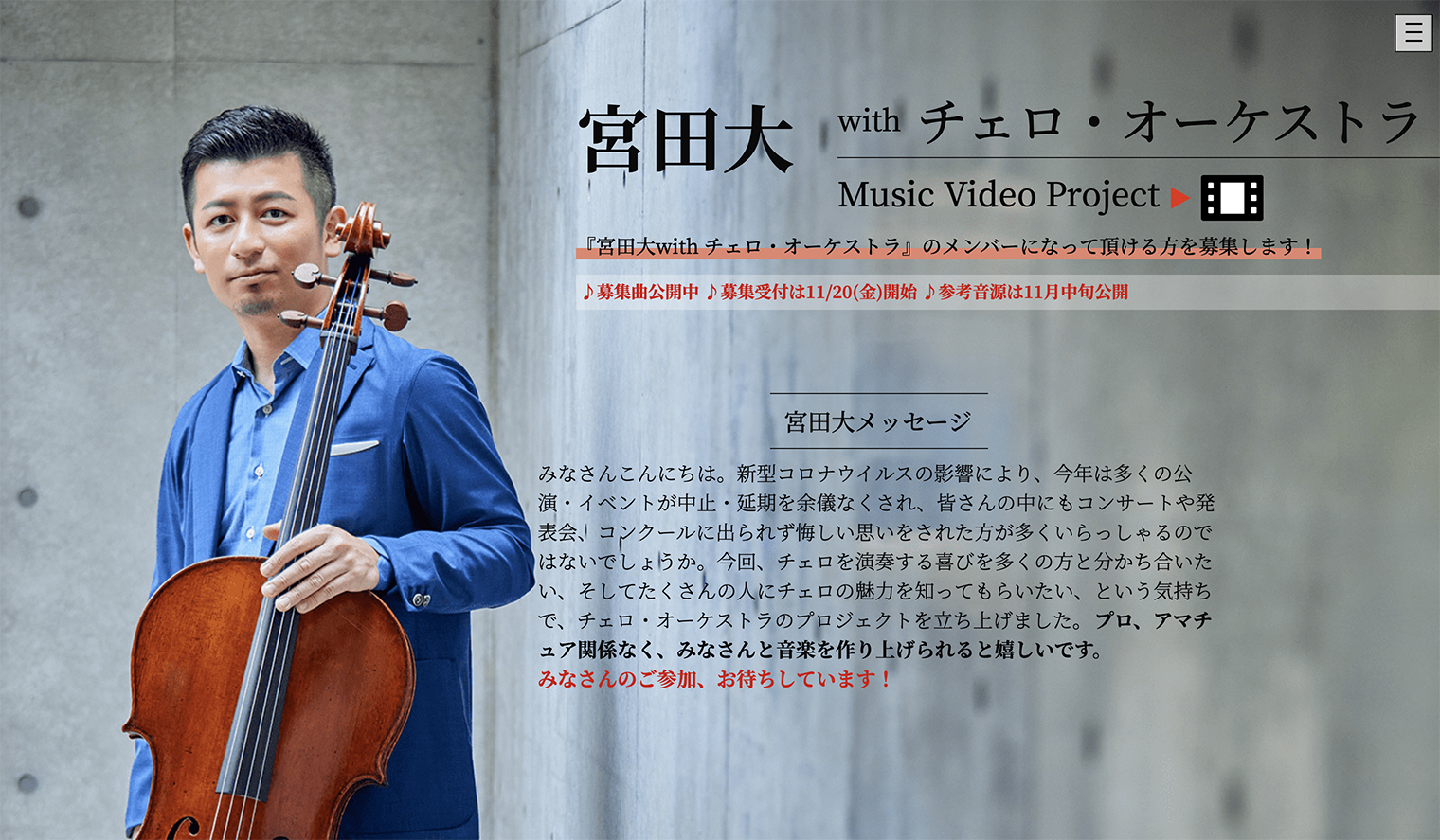 実は、今、所属している日本コロムビアと新しい企画を立ち上げました。チェロオーケストラ(チェロアンサンブル)の企画です。今年は新型コロナウイルスの影響で演奏会が延期や中止になり、チェロ好きな方々も発表会やコンサートができない状態だと思います。ですので、このような企画ができたらと思い、立ち上げました。