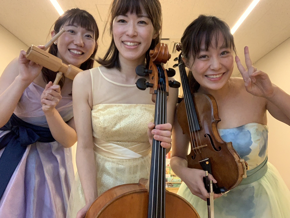 宮下朱里先生(甲信地区ヴァイオリン科指導者)、塚尾桃子先生(チェロ科指導者)と宮下先生の中学時代の同級生、小林亜矢さんによるヴォルーナトリオが、長野県内の保育園・幼稚園などへの「出張コンサート」で大活躍されています。いずれもママさんで幼児教育のスペシャリスト。「出張コンサート」のプログラムは、研究に研究を重ねた内容で、訪問先の保育園や幼稚園の子どもたちに、生の音楽を伝える、感じてもらえる貴重な機会を実践されています。