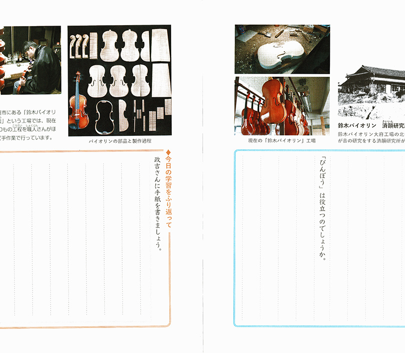 小学6年生は、鈴木政吉さんの「前向きに生きる 」姿勢をテーマに、「よりよく生きる喜び」について、学ぶことになります。さらに嬉しいことに、大府市で生まれ、スズキ・メソードで育ち、世界に羽ばたいたヴァイオリニストで、大府市広報大使を務める竹澤恭子さんも大府市ゆかりの人物として、中学1年生の道徳教材の対象に選ばれました。テーマは「進化を求めて」。「希望と勇気、克己と強い意志」を持つ人物として、その生き方を子どもたちが学びます。