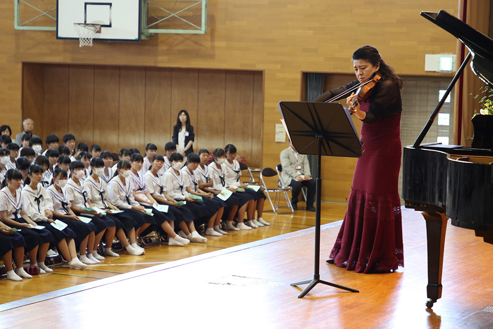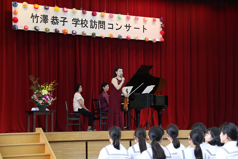 ところで、竹澤恭子さんは、平成18年度から3年に一度の割合で、大府市に4つある中学校のそれぞれの体育館で「学校訪問コンサート」を実施されています。つまり、大府市の中学生は、在学中に必ず竹澤さんの音を聴いていることになります。誠に羨ましい環境と言えるでしょう。