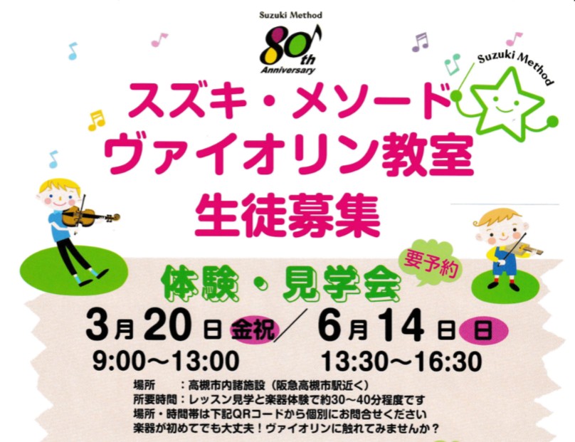 2026.3.19 高槻安満教室 体験・見学会 高槻安満教室の無料体験・見学会をします!(要予約) (1組30~40分程度です) 子供から大人の方まで気軽にどうぞ♪ 詳細はメールまたは、お教室HPのフォームより直接お問合せください。