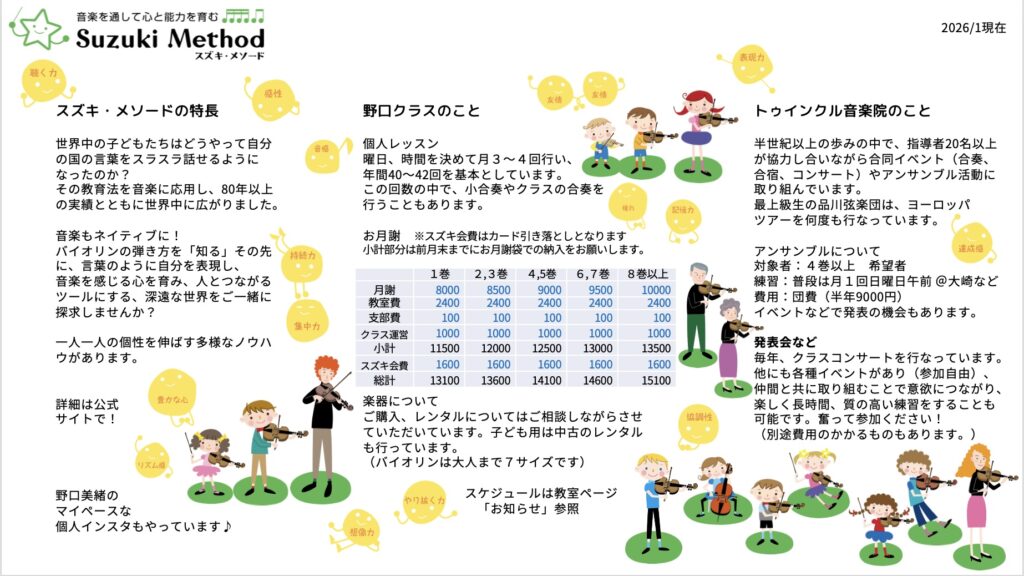クラスについて、そして所属する指導者グループ、トゥインクル音楽院についてご紹介します