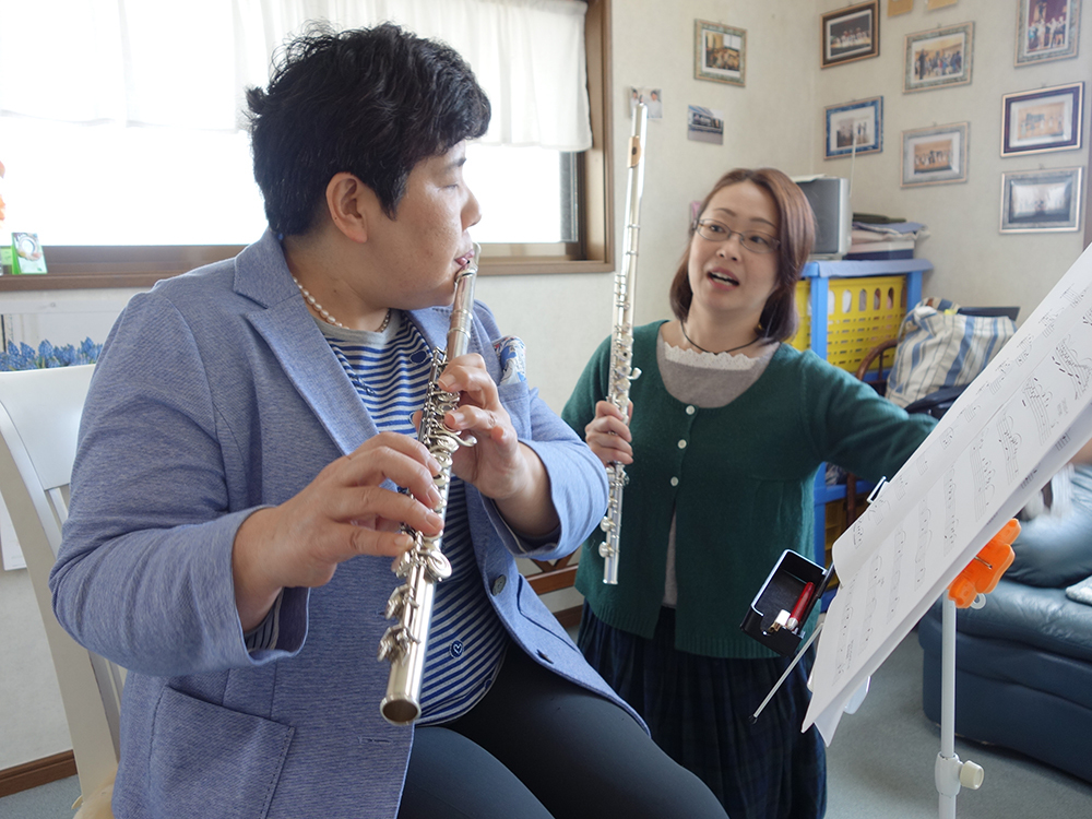 先生とは、お友だち感覚でお付き合いいただいております。とにかく、レッスンを受けること、自分で練習をすること、そしてお客様を前にしてソロで演奏したり、フルート・アンサンブルをしたり、すべてが楽しいですね。
