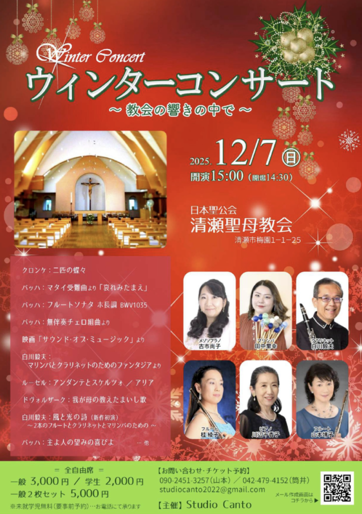 クリスマス前の午後のひととき、森の中の教会でのコンサート、お運びいただけましたなら幸いでございます。
