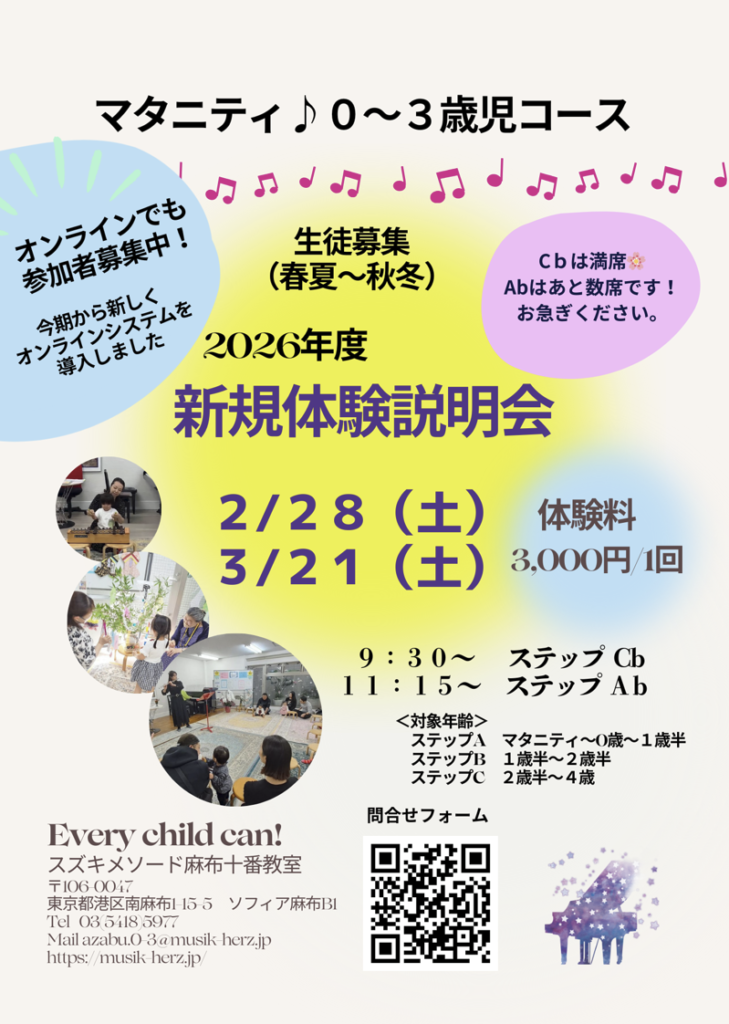 2/28(土)、3/21(土) @スズキメソード麻布十番教室